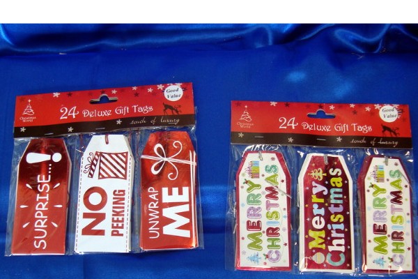 DELUXE GIFT TAG Pkt 24 Deluxe Gift Tags SKU: X282353 Login to see the prices Description DELUXE XMAS GIFT TAGS PACK 24