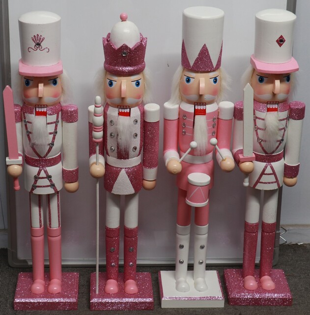 NUT CRACKERS SET OF 4 NUT CRACKERS SKU: P9040 Login to see the prices Description SET OF 4 NUT CRACKERS 60CM PINK AND WHITE
