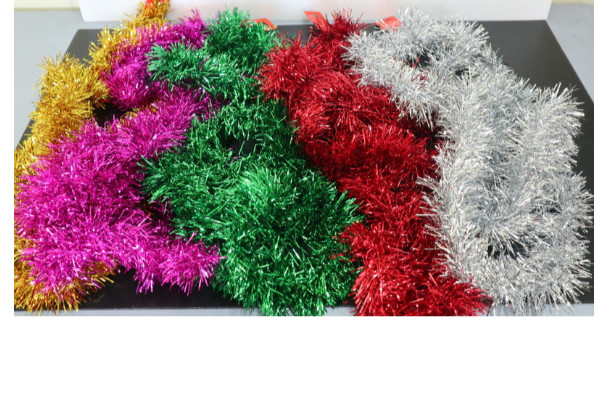 TINSEL ASSORTED Tinsel Gold/Silver/Red/Green/Purple SKU: P3025 Login to see the prices Description ASSORTED COLORS XMAS TINSEL